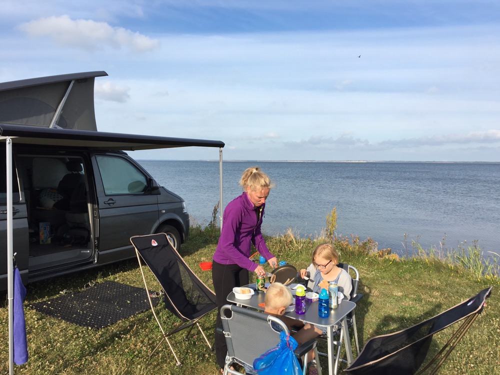 Så har vi forladt Henne og turen går nu nordpå. Efter frokost pitstop ved kabelbanen ved Hvide Sande. Kørte vi over Harboøre til Jegindø, hvor vi har fundet et fint lille spot ved Jegildhavn. Her har vi leget, fisket krabber og spist mens vi har nydt den fine udsigt.