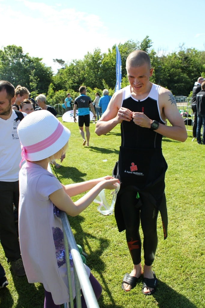 I dag har vi været på tur til Haderslev, Thomas skulle gennemføre sit første 1/4 ironman, en “lille” tur på i alt. 950m svømning, 45 km cykling og 10,6 km løb. Han havde valgt at gennemføre det, på en fin solskindsfyldt dag, så det blev en rigtig hyggelig udflugt, hvor vi også fik følgeskab af Mai og Tonny og deres to drenge. Selv om Thomas var noget nervøs for svømmeturen (hvilket er forståeligt nok når man ser billedet fra turen i baljen) klarede han det rigtig fint. men der var også fuld opbakning og tilråb fra hans helt egen fanklub:-) Resultatet er desværre ikke blevet offentliggjort endnu.