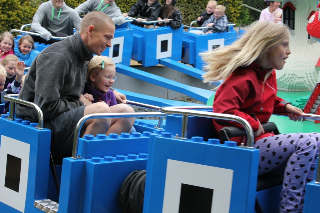 Margrethe var oppe at prøve dragen, hvilket hun var meget stolt af og selv om hun havde klamret sig til Mor under hele turen, var kommentaren fra hende da turen var overstået, “det var mega fedt” Alle timer i Legoland blev udnyttet, tror vi gik en time før de lukkede, hvor efter vi tog på Billund restaurant, hvilken kolonarisk oplevelse:-)