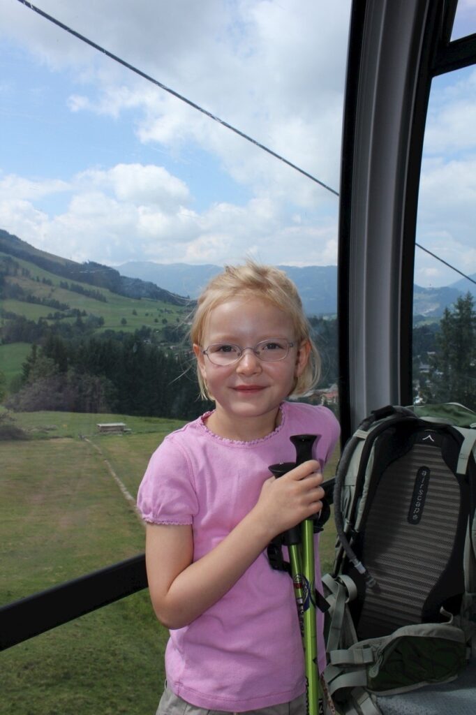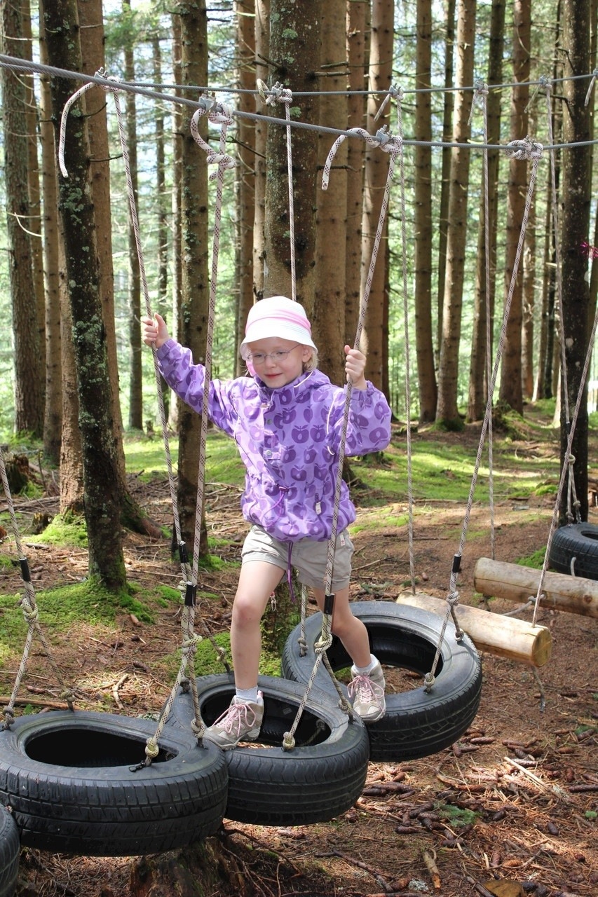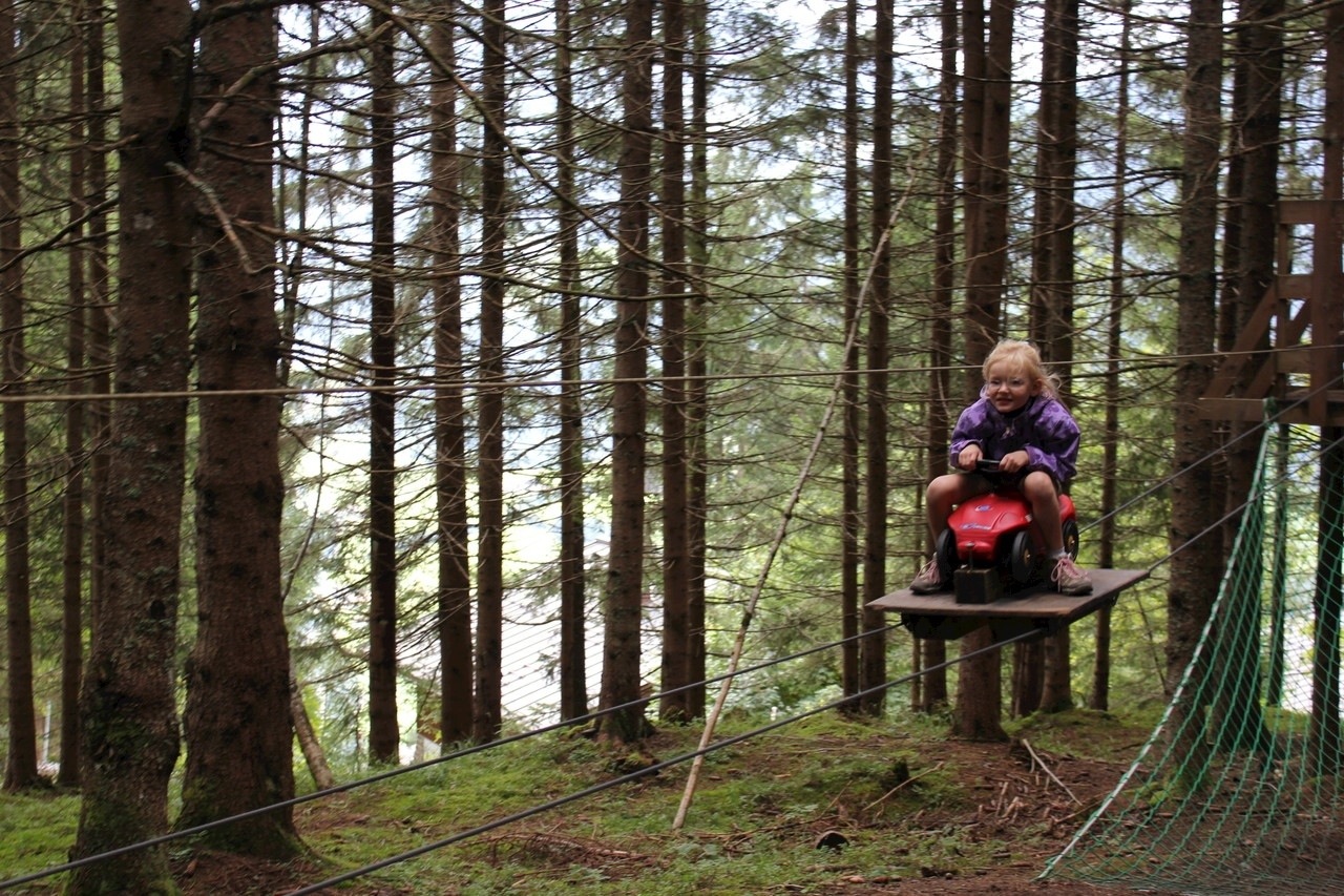 Efter morgenmad og en tur rundt på gården for at se på dyrende, tog vi ind til Maria alm og tog liften op og derfra gå til kælkehytten Jugendalm, på turen kom vi igennem en skovlegeplads, på Jugendalmen fik vi noget at spise og drikke og legede lidt inden vi gik ned på den anden side af bjerget.