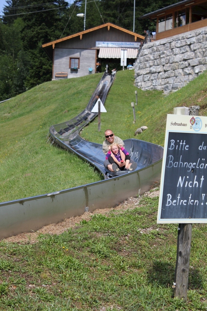 Det blev også til et par ture i sommer rodelbahn, til stor fornøjelse for far og datter.