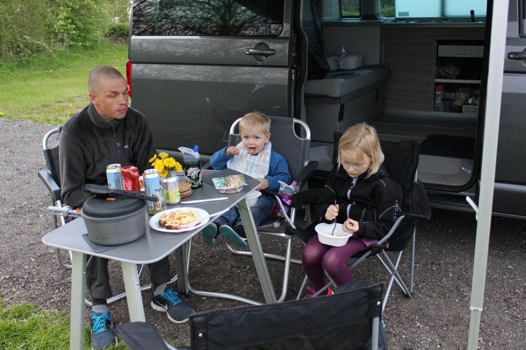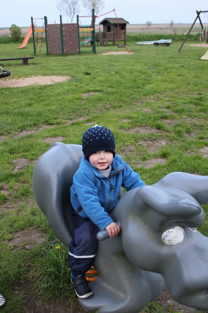 Det gode Påskevejr inspirerede os til at tage en enkelt nat i bussen, vi tog afsted tirsdag formiddag og ankom efter en tur forbi Otto Duborg til en Campingplads nær et stort Lalandia ligende badeland kaldet Weissenhauser strand. Det blev dog lidt af en udfordring at få Martin til at sove nu han ikke var spændt fast og det endte da også med at mor måtte ligge sig imellem de to barylerer.