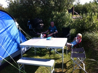 Så er vi nået til Slettestrand camping og har fået opsat basecamp. Thomas har været ude at cykle på et af Danmarks fedeste mountainbike spor Svinkløv MTB. Martin og Margrethe nyder tydligvis campinglivet og det gode sommervejr. 🙂