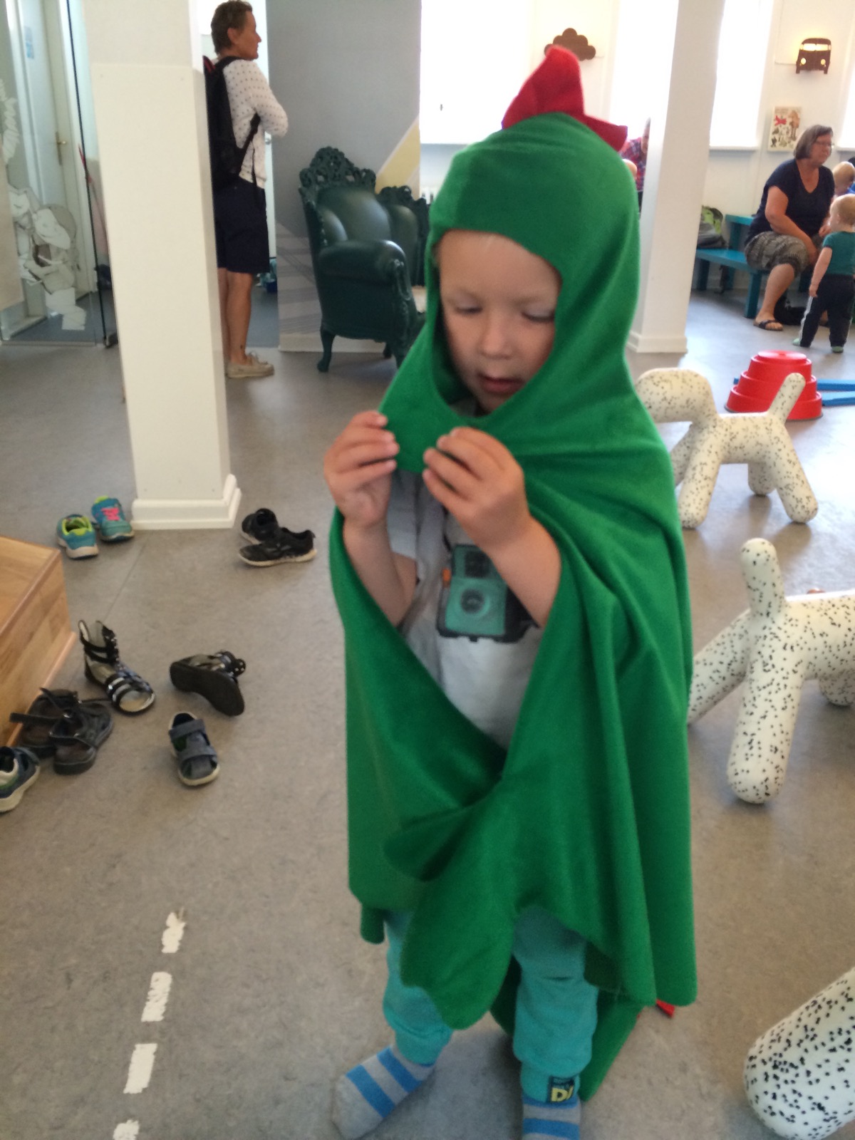 Der blev hygget i haven i varmen, LegeKæden blev besøgt og Martin fik valgt sin belønning for at smide bleen. Biblioteket blev besøgt og vi mødte Emilie Ester fra X-faktor og kørte ikke mindre en 2 ture i byens tog.