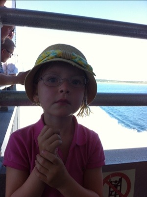 Idag har vi pakket Base Camp sammen efter nogle dejlige dage på camping i Svinkløv klitplantage. Vi tog færgen fra Ebeltoft til Sjællands Odde for at køre ned og besøge Moster og Jesper. Margrethe syntes at færgen sejlede rigtig hurtigt.