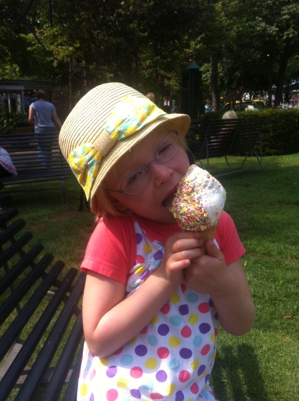 Idag er vi i Tivoli i København. Margrethe er alene afsted sammen med faster Anne og Martin hygger med Mor og Far. Margrethe syntes det var rigtig sjovt at køre S-tog ind til Hovedbanegården. Rasmus Klump land var også et stort hit.
