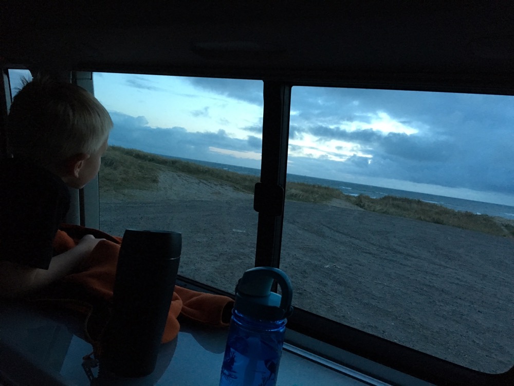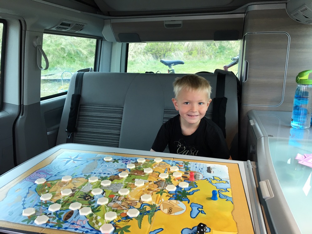 Om lørdagen blev det til hygge med spil i bussen om en enkelt geocache på molen inden vi fandt en fiskesø på vejen hjemad.