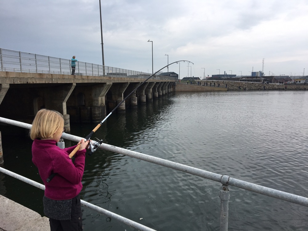 Denne gang var det Margrethes tur til at komme på tur. Vi skulle egentlig have været på Sheltertur. Men det blev lavet om til en fisketur til Hvide Sande. Vi startede med at fiske på molen da Margrethe gerne ville prøve at fange en fladfisk. Efter et par timer uden fisk syntes Margrethe at vi skulle prøve ved slusen om vi kunne fange noget. Her blev det til en hornfisk og 3 sild Margrethe syntes især at hornfisken var sjov. Derefter kørte vi ned til stranden og lavede en lækker menu som Margrethe havde bestemt ostepølser og salat med lunt flutes og hvidløgssmør. Derefter lidt aftenhygge i bussen med film og snold.