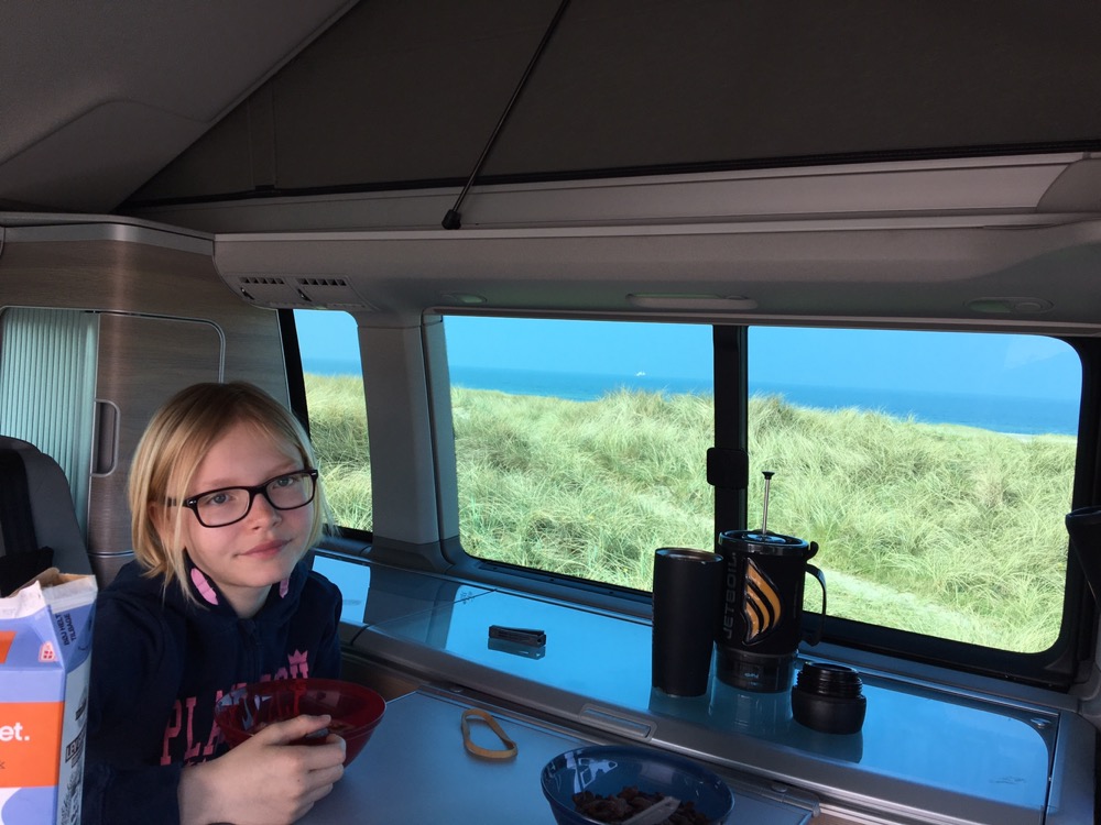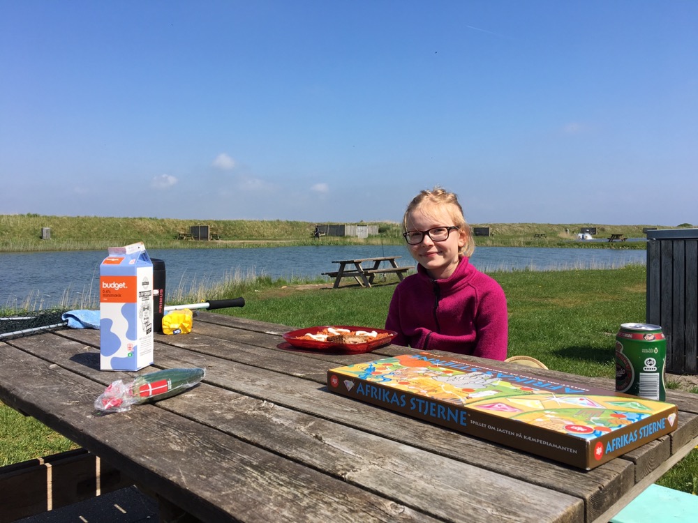 Dagen efter sov vi længe og lavede pandekager til morgenmad og spillede lidt spil inden at Margrethe kom i tanke om at hun gerne ville ud og fiske igen. Så vi fandt en put and take sø i Klegod hvor vi dog måtte nøjes med hyggen og ikke fangede nogen fisk. Dagen blev afsluttet med at vi grillede fangsten hjemme inden vi kørte i indelukket og fik is til dessert. Isen gjorde det også ud for en blomst da det var Morsdag.
